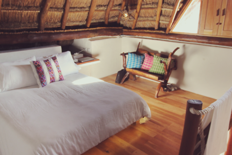 Hotel El Pueblito is an excellent new hotel, tucked inside Holbox’s pretty wooden shopping centre by the same name. This central hotel offers guests warm and elegantly decorated rooms made with materials from the region. Bright, fresh, and with everything you need for a highly comfortable stay in Holbox, Hotel El Pueblito is a wonderful options for couples and families alike. Choose between luxurious double rooms, king-sized suites, some with a balcony, or even their spacious studio which can sleep up to 4 people. All rooms have a flat-screen TV, air-conditioning and ceiling fans, safety deposit box, and natural toiletries from the region.