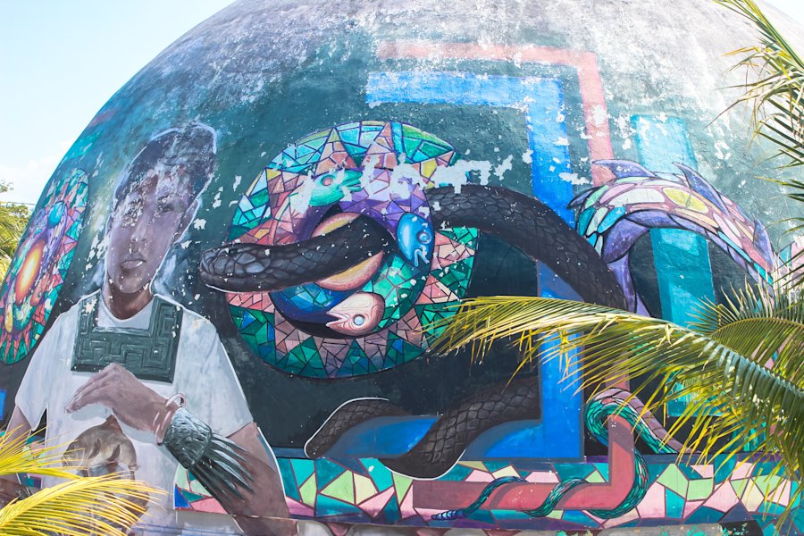Since 2014, there has been an international art festival on the island to which celebrated artists from around the globe have been invited to create their masterpieces. As we love these so much, we've created a wonderful walking tour of Holbox's art; we hope you love them as much as we do! See the gallery above for photos of the murals in order of the tour – this will help you find them more easily. This is only part 1 of the art mural tour, so if you want to see more, check out part 2 also in the sightseeing section of the guide.